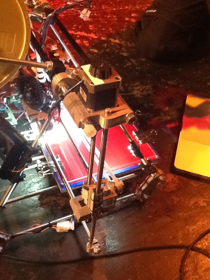 Zum zweiten liegt mir das Thema nahe: Ich liebe technische Basteleien. Menschen, die diese Leidenschaft teilen, begegnen mir immer wieder auf dem wunderbaren Webmontag Frankfurt, und sie versammeln sich im Hackerspace Frankfurt (Offenlegung: dessen zahlendes, aber eher inaktives Mitglied ich bin). Dort hat sich eine ganze Truppe von 3D-Drucker-Bastlern versammelt, die sich regelmäßig mittwochs trifft, um ihre Maschinen weiter zu verbessern und neue Drucker aufzubauen.